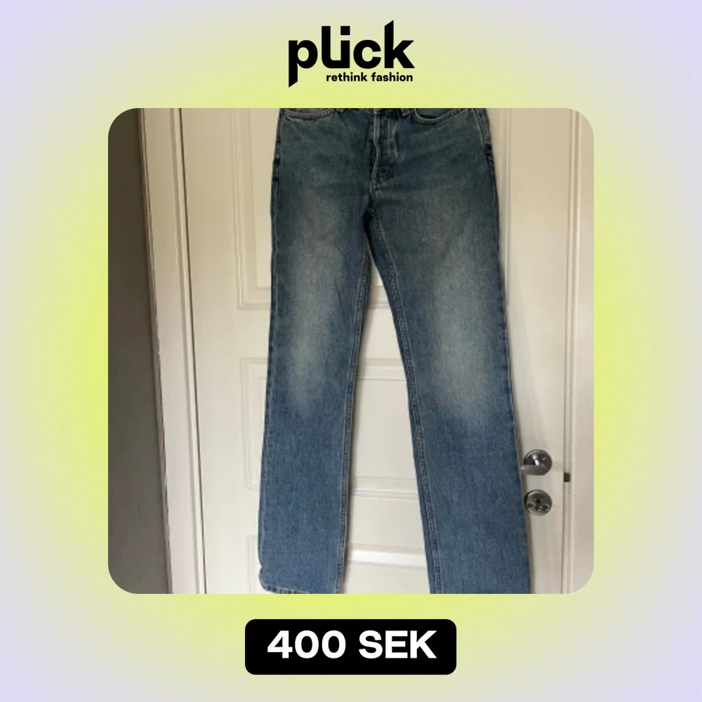Helt oanvända, supersnygga jeans från weekday i storlek W25 L32 i ljusblå tvättning. Säljer då de tyvärr inte passar mig längre. Knappar hela vägen som knäppning. Se bilder på weekdays hemsida för passform på denna modellen. Nypris är 600 kr.
