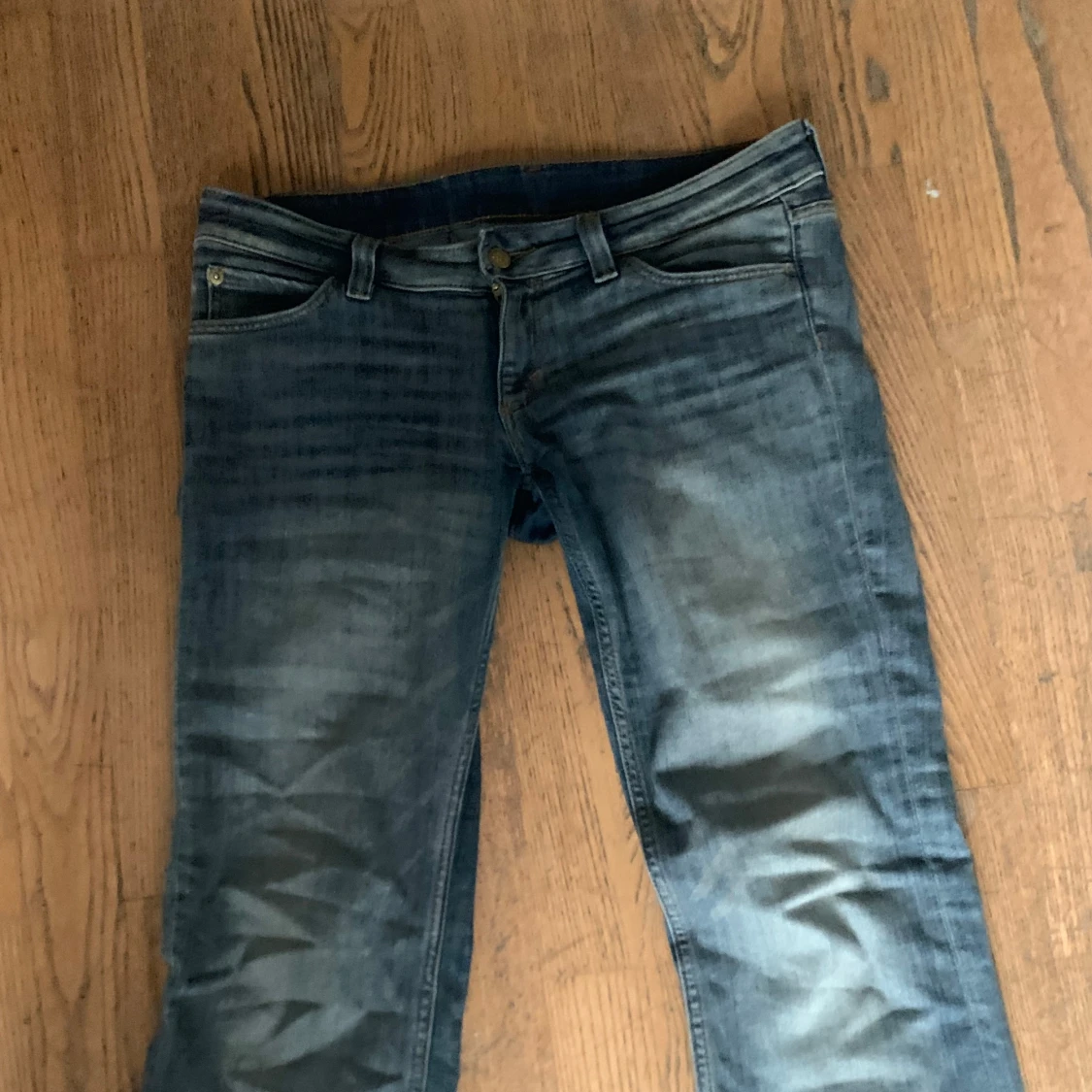 Skigsnygga jeans från weekday. TROR strlk 31/34!men är osäker, står inte. Midja rakt över: ca 43cm, stretchas. Innerbenslängd: 80cm. Defekter längs ned men syns inte speciellt mycket. Väl använda💕