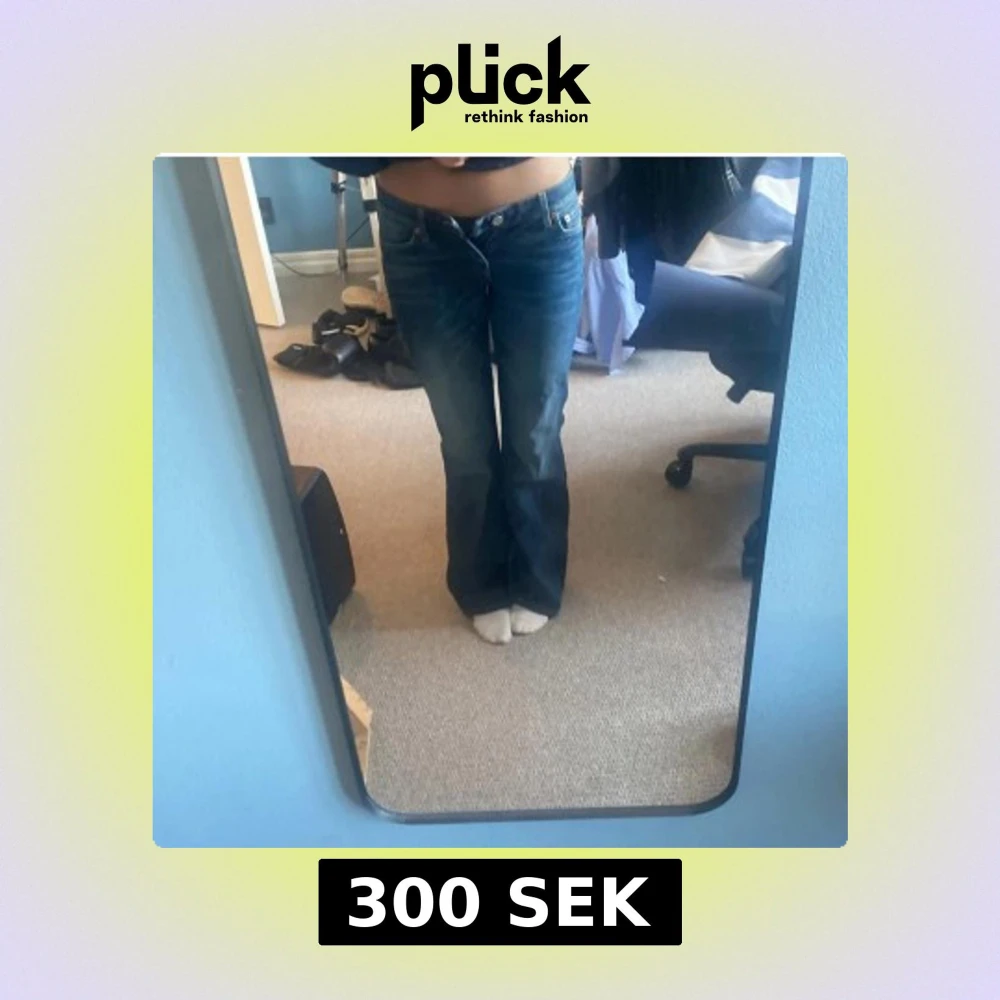 Säljer ett par blå Weekday Nova Low Slim Bootcut jeans med låg midja. Jeansen har klassisk femficksdesign, smal passform upptill och bootcut nedtill. Materialet är jeans i bomull och de har snygga kontrastsömmar. Perfekta för dig som gillar retrovibbar och cool siluett.