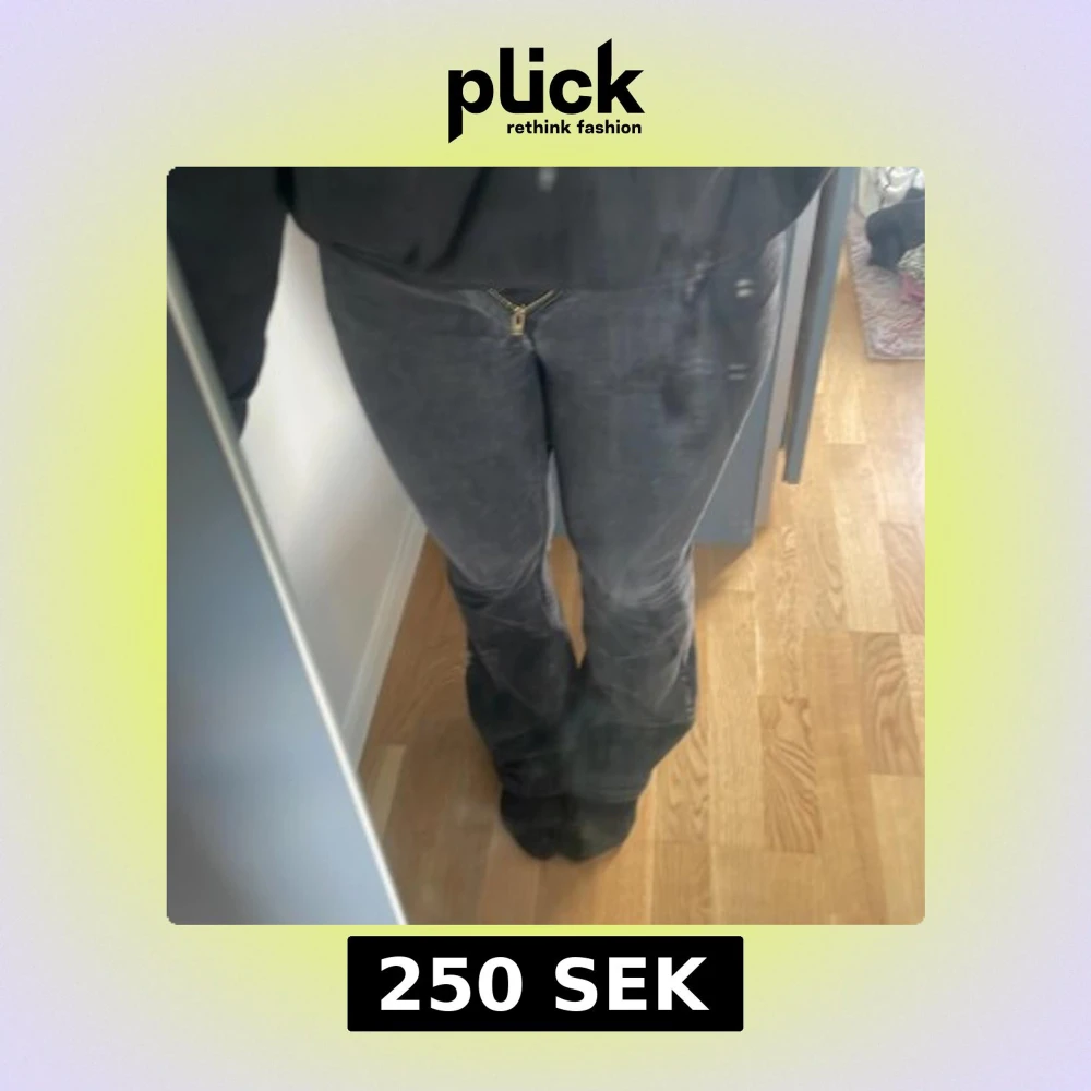 Säljer ett par svarta jeans med bootcut-modell och dragkedja framtill. Jeansen har klassiska fickor bak och är i stretchigt material som sitter snyggt över höfterna och låren. Perfekta för dig som gillar en lite utsvängd look.