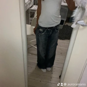 Säljer dessa sjukt snygga baggy jeans då dom inte kommer till användning. Dom är jättesnygga dock har de gått sönder lite i slutet avjeansen då dom var för långa (skriv priv för bilder på det). Det står tyvärr ingen storlek eller märke så vet inte riktigt