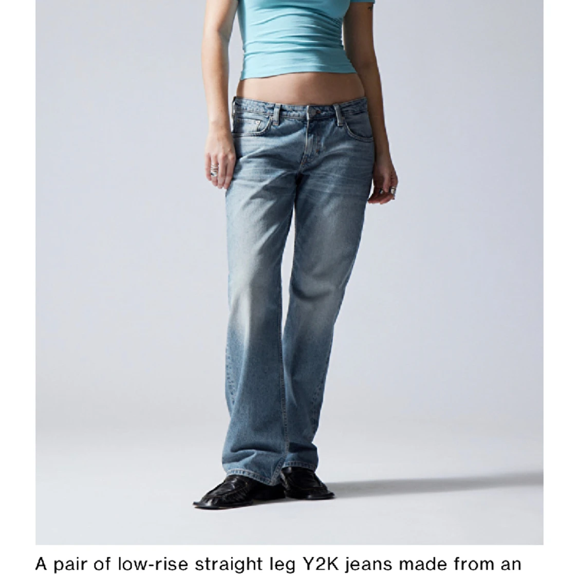Säljer dessa jätte populära jeans från weekday, använda en gång. Storlek 28/32. Låg midjade och raka!