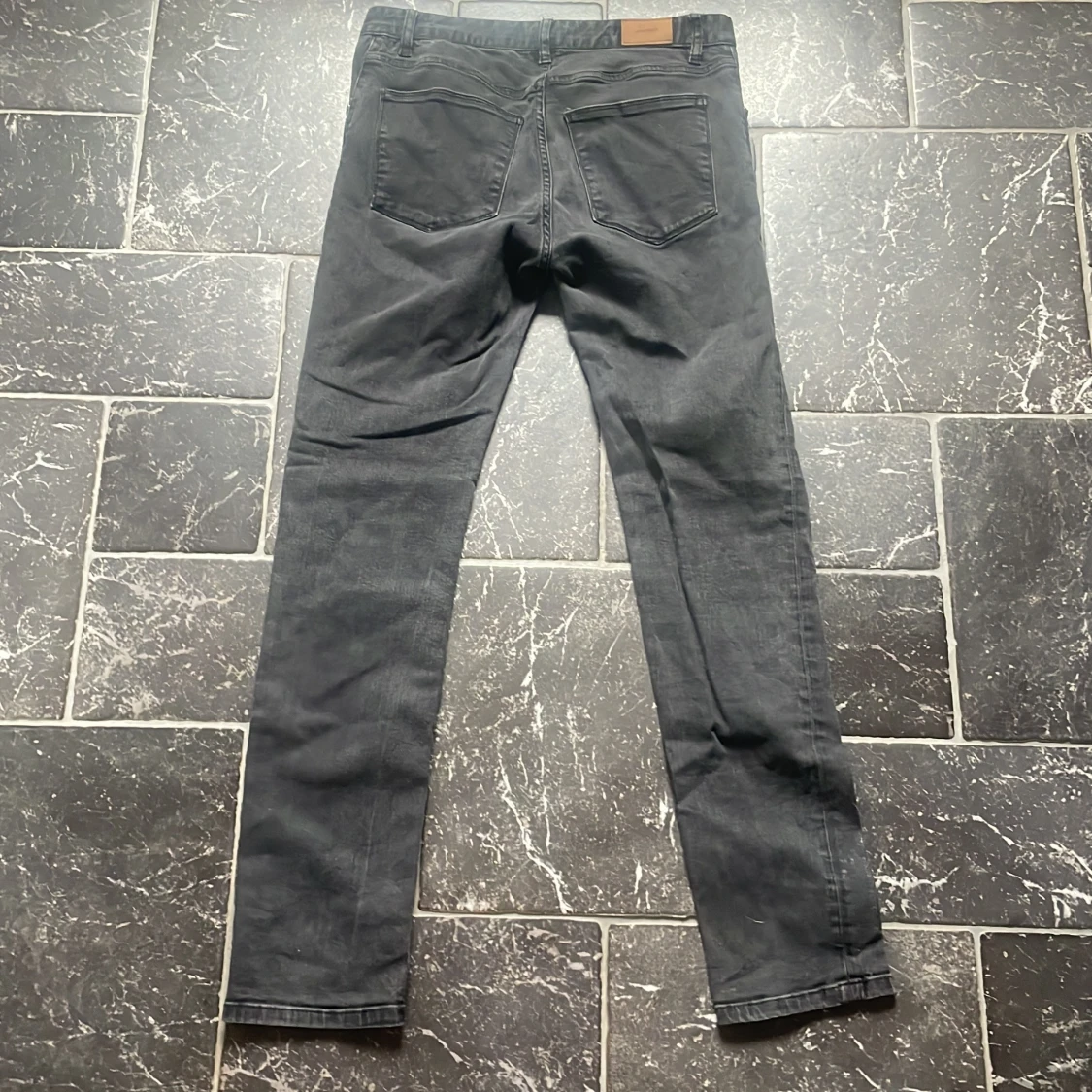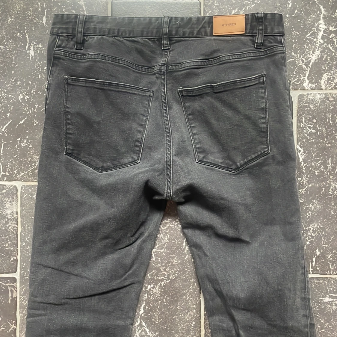 Säljer ett par snygga svarta jeans från Whyred. De har en slim passform och är perfekta för både vardag och fest. Jeansen har en klassisk femficksdesign och en läderpatch med Whyred-loggan på baksidan av midjan. De är i bra skick och redo för en ny ägare!