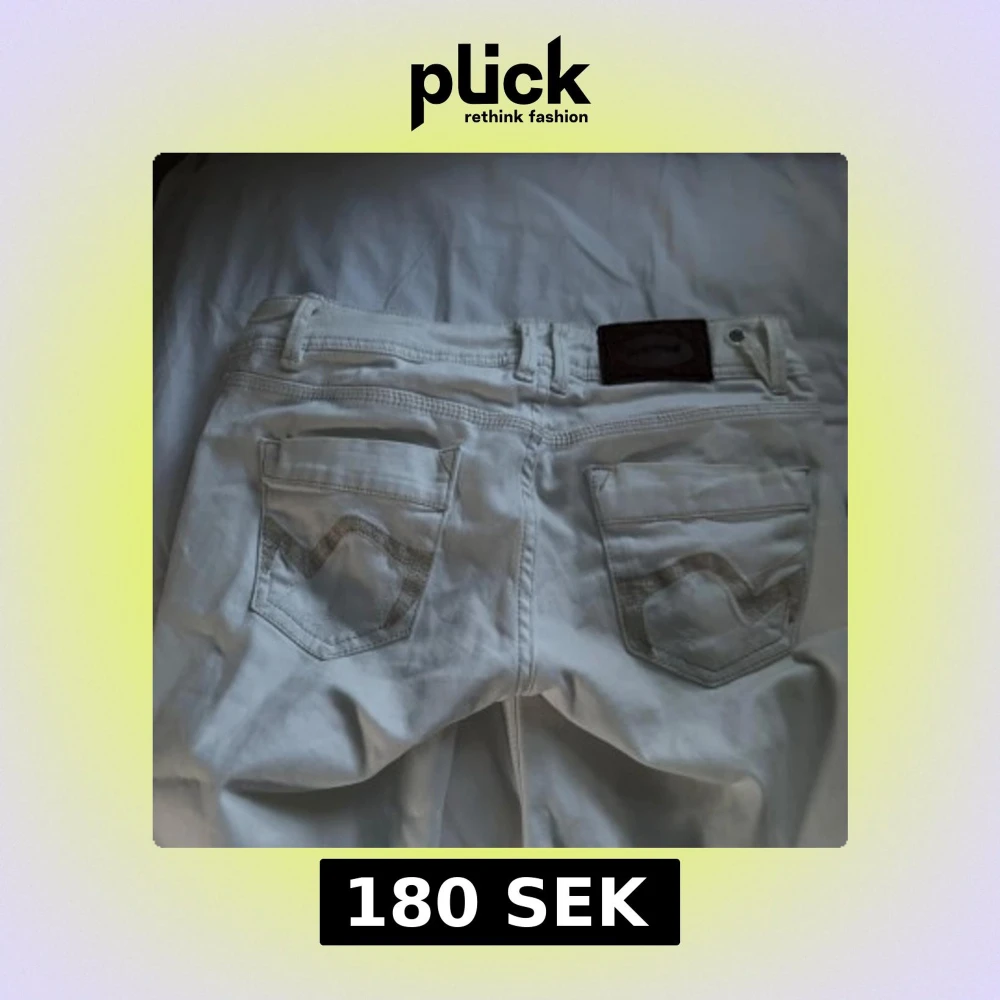 Snygga vita jeansbyxor från promod med gulddetaljer på fickorna. Dom var straight men klippte en slit i dom så dom ser mer bootcut ut. Säljer pga att dom är alldeles för långa för mig som är 166 cm💕strl S
