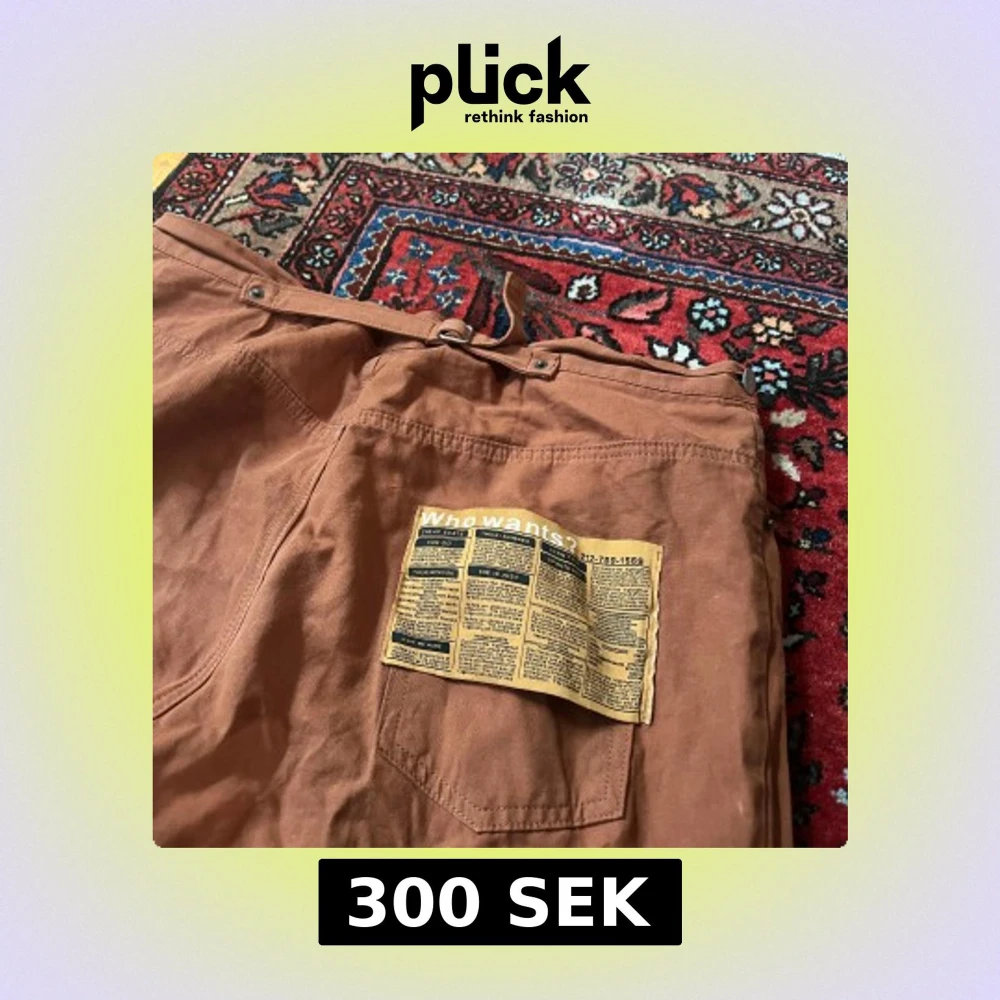 Säljer ett par bruna byxor med baggy passform. Byxorna har går att justera i midjan med en rem baktill.