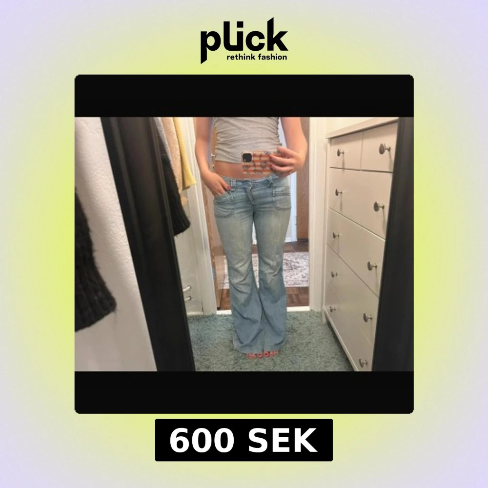 Ljusblå jeans från Orsay med bootcut-modell och låg midja. Snygga detaljer med markerade sömmar och stora fickor fram och bak. Jeansen är i klassisk denim och har dragkedja och knapp framtill. Perfekta för dig som gillar retrovibbar och en avslappnad look.