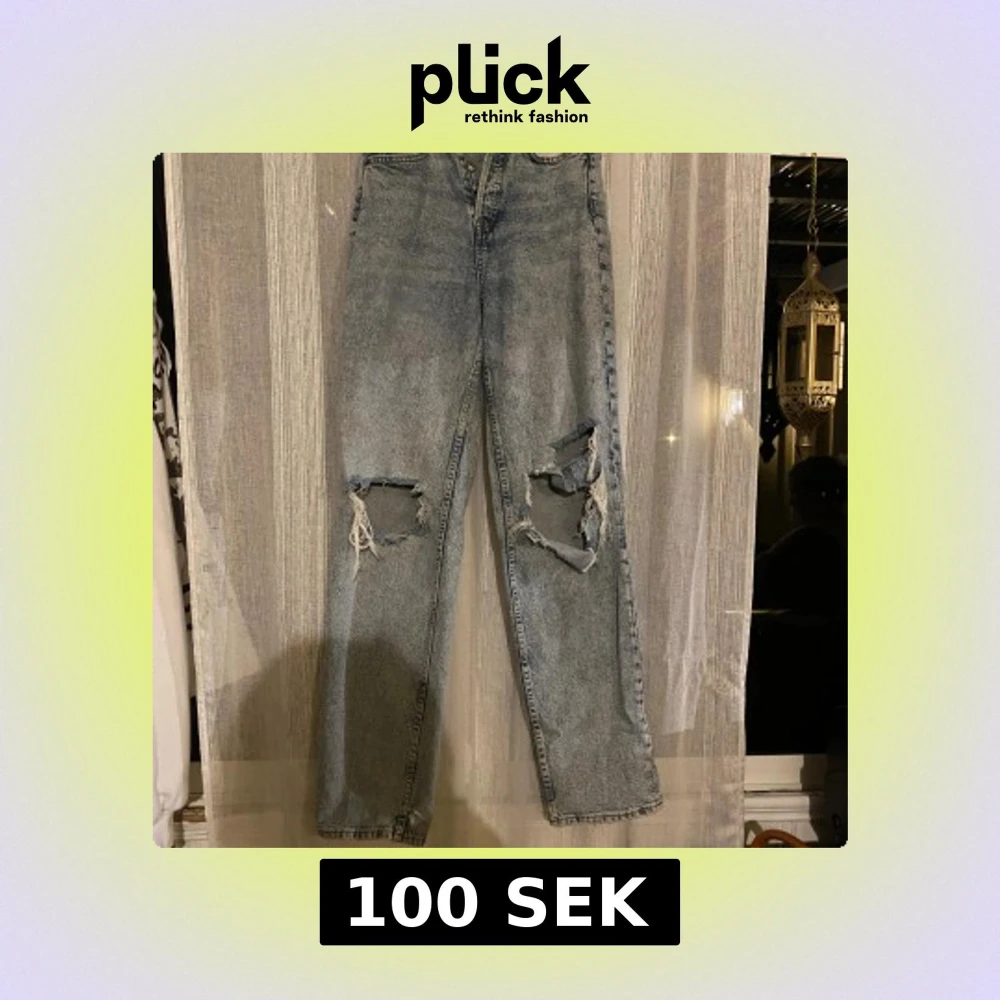 Ljusblå jeans med slitningar - Säljer ett par ljusblå jeans med slitningar vid knäna från Zara. Perfekta för en avslappnad och trendig look.