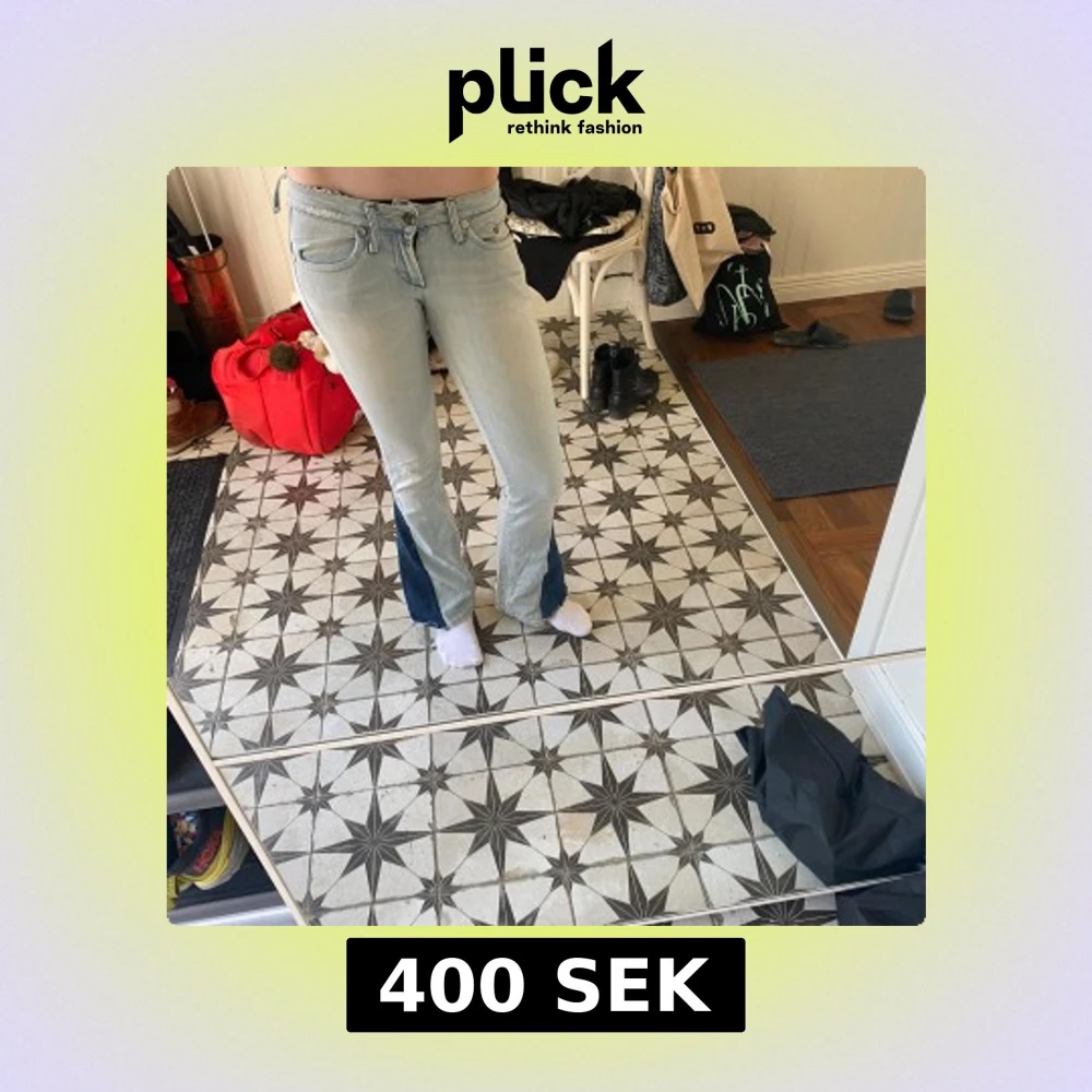 Low waist bootcut jeans. Lite slitna men det ser mest snyggt ut. Köpta här på Plick men säljer för att de är för små o för korta.