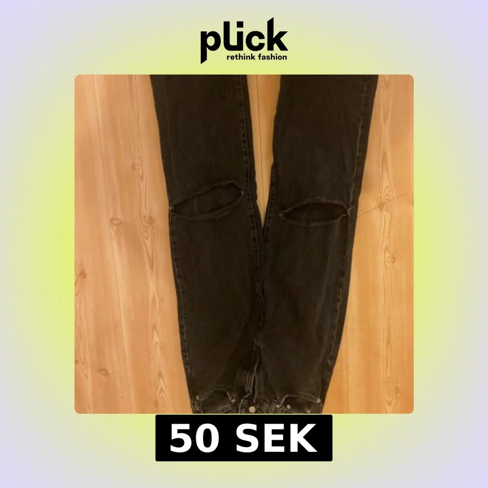 Snygga svarta jeans från 157 med coola slitningar vid knäna. Perfekta för en avslappnad och trendig look. De har en klassisk femficksdesign och knappgylf.