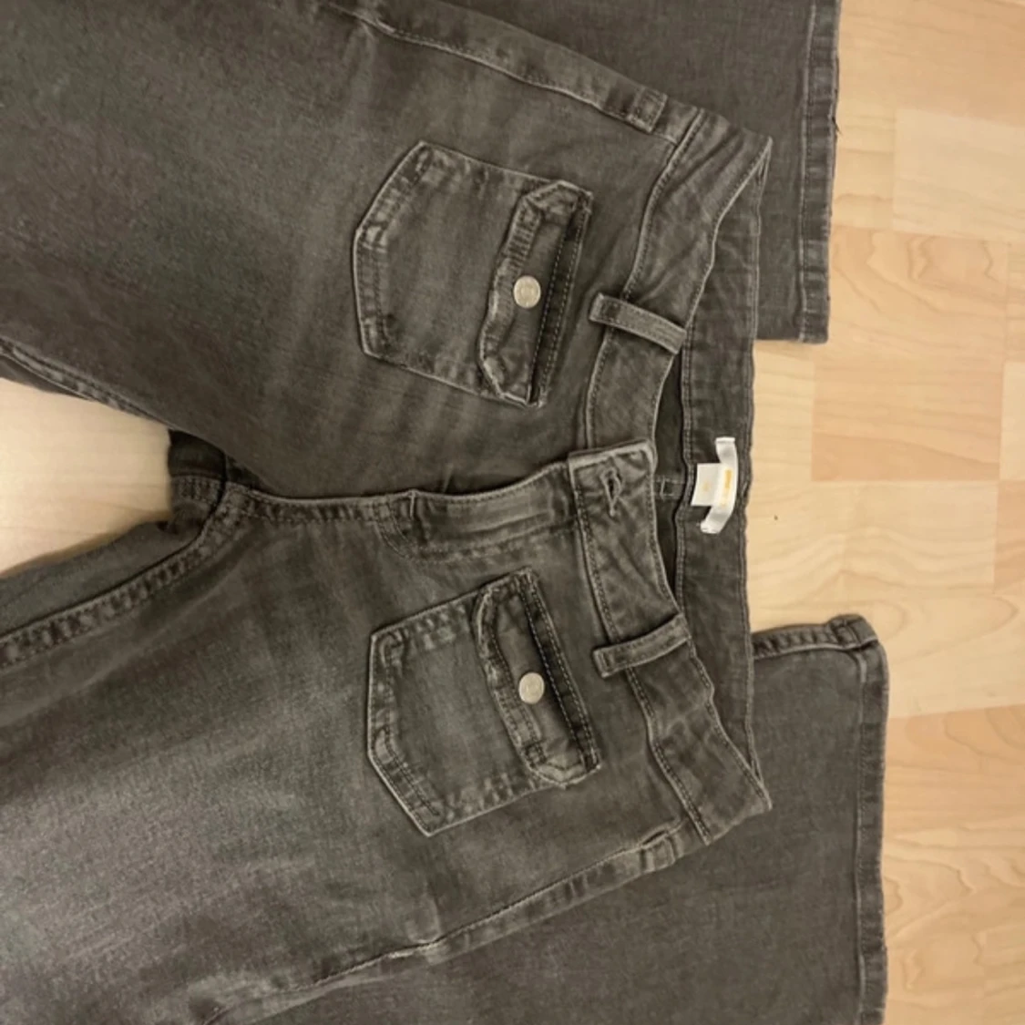 Snygga grå jeansbyxor med unika fickdetaljer och knappar. Använt endast 1 gång❣️