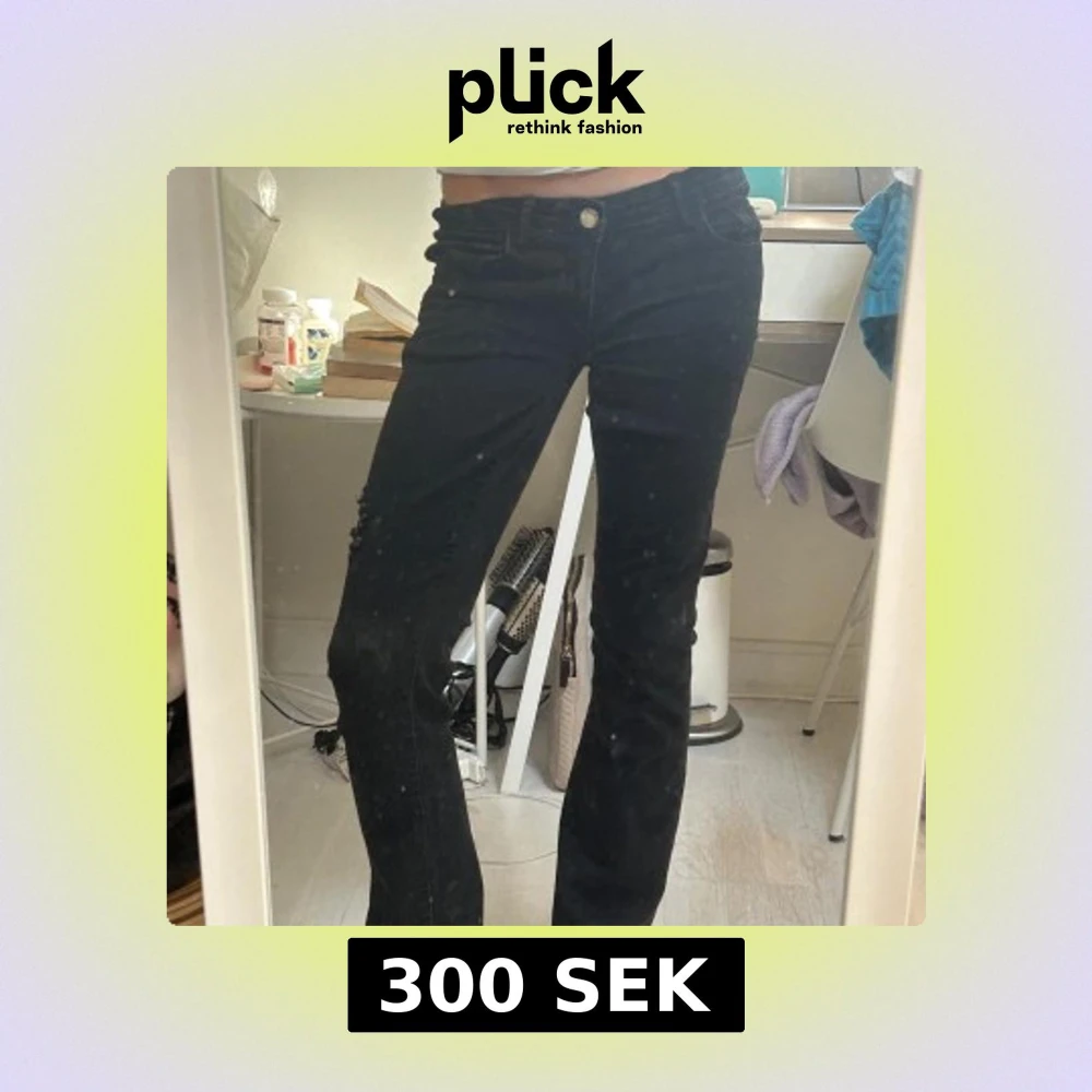 Ett par lågmidjade svarta jeans som jag har sytt om💓pris kan diskuteras