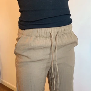 Säljer nu dessa super fina brun beiga linne byxor från h&m pgr av att dem är för korta för mig, jag är ca 1,61 och dem är lite för korta. Bild 1 är färgen linne byxorna är i. är fler intresserade blir de budgivning. dem är oanvända. Köpare står för frakt.