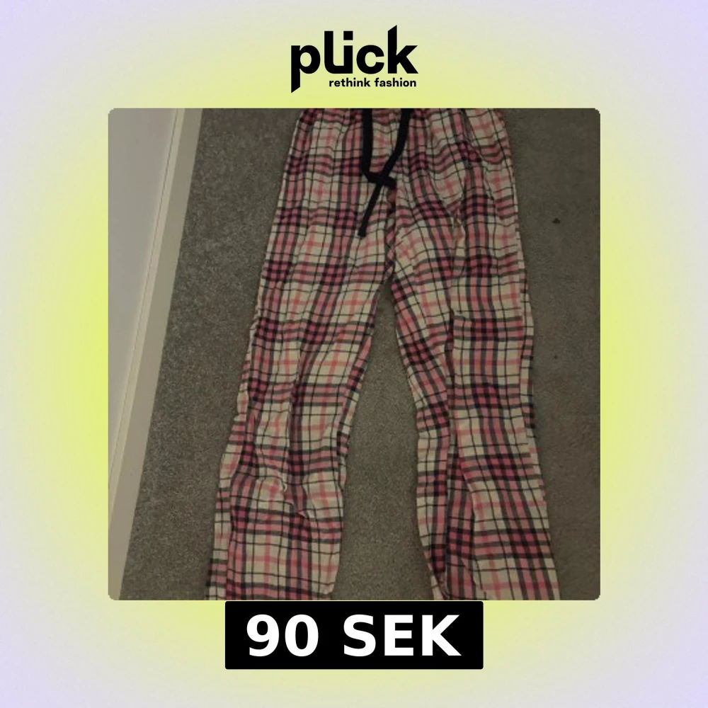 Säljer ett par mysiga rutiga byxor i rosa och vit med snörning i midjan. Perfekta för en avslappnad dag hemma. Byxorna har en loose passform och är tillverkade i ett mjukt material. Dom är i storlek xs/s.