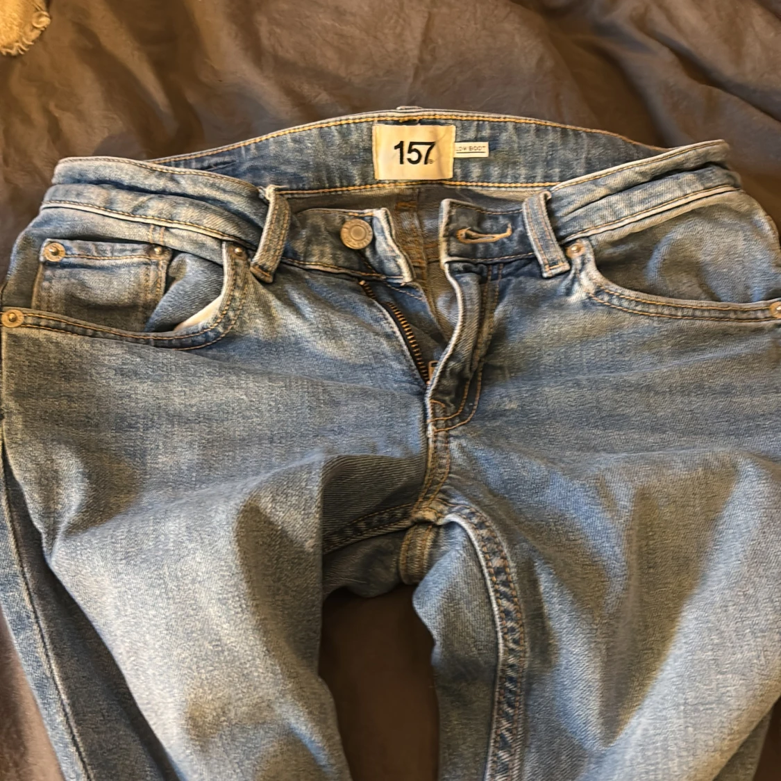 Snygga ljusblå jeans från 157 i storlek XS short. Klassisk femficksmodell med raka ben och normal passform. Jeansen är tillverkade i bomull och har en enkel, tidlös look som passar till det mesta. Perfekta för dig som gillar en avslappnad stil. har inte använt så mycket