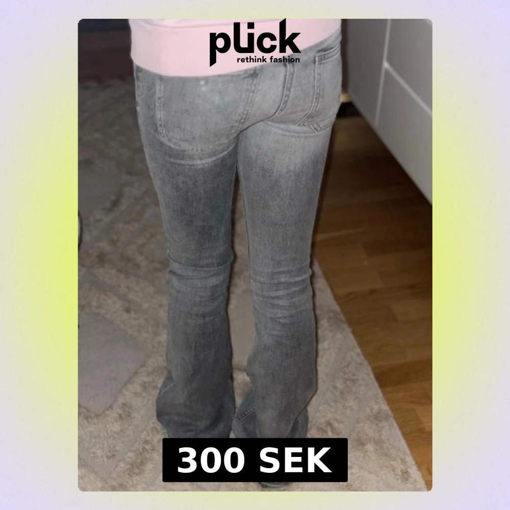 Snygga grå jeans med bootcut och är lågmidjade. Dessa jeans sitter sjukt bra och är supersköna💕 sitter som xs också❤️