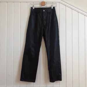 sjukt snygga byxor i veganskt läder 💕storlek 36. lite croppade, passar bäst på någon under 165 cm🌷 i väldigt bra skick, endast använda en gång. väldigt bekväma med mjukt material på insidan