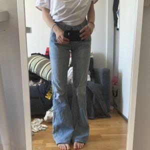 Skitsnygga levisjeans med låg midja och i en flared modell! Väldigt fin ljusblå färg 🩵
