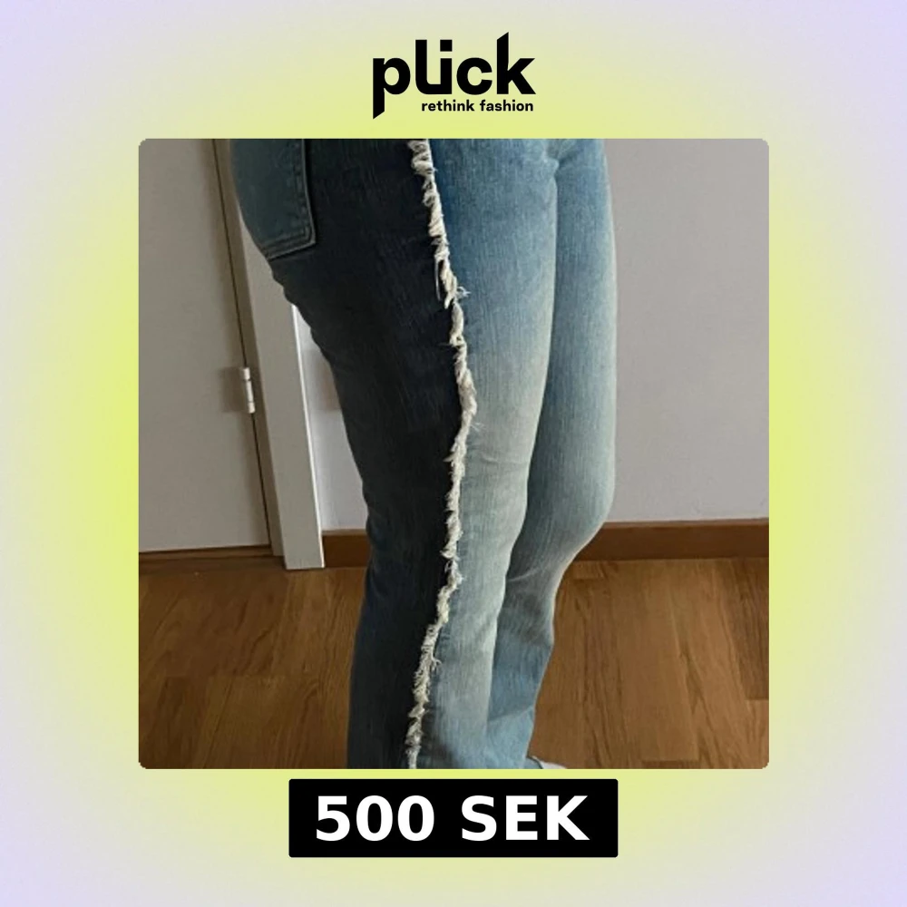 Säljer dessa super snygga jeans köpt från monki. Jag har 2 stycken i storlek S/M. Skriv vilka storlekar ni är intresserade av! Jeansen har 2 färger, mörkblå där bak och framtill ljusare blå. Bootcut passform och fina detaljer längs sidorna och bakfickorna. Låg midja, Möts upp i Stockholm! Endast kontanter eller Swish 🌸💕