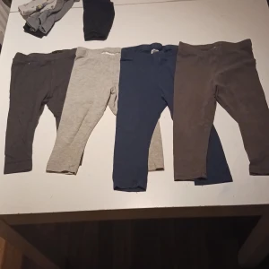 Från vänster: 1st bruna i storlek 80, 1st ljusgrå i storlek 86, 1st mörkblå i storlek 86, 1st bruna i storlek 86. Använt skick