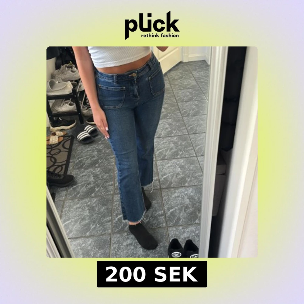 Funkar även på 36or då dom är stretch Säljer ett par blå jeans med hög midja och raka ben. Jeansen har råa, fransiga benslut och stora fickor fram och bak. Klassisk denim med snygg passform, perfekta till sneakers eller boots.