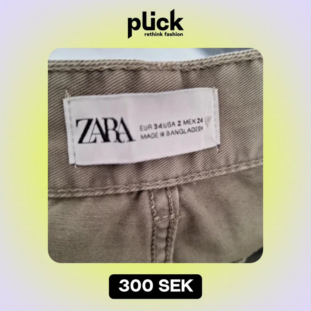 Ett par gröna cargo byxor från Zara i storlek 34. Använd endast 2 gånger, säljer dessa på grund av att dom inte passar längre.