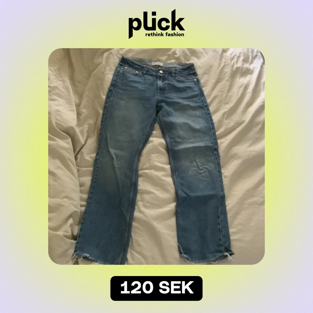 Säljer ett par blå jeans från Zara i storlek 34. De är i bra skick och har en klassisk femficksdesign. Jeansen har en rak passform och är avklippta vid anklarna för en trendig look. Perfekta för både vardag och fest!