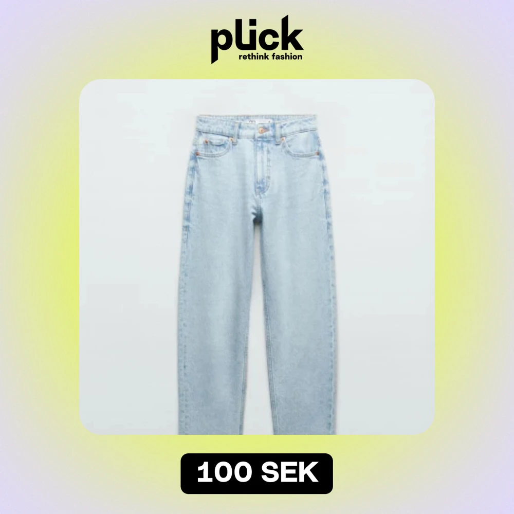 Ljusblå mom jeans från Zara. Super fina på, använda men väldigt bra skick.