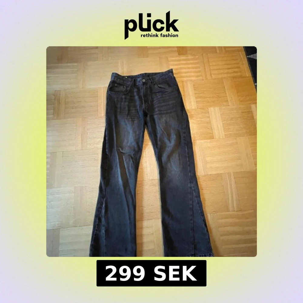 Snygga svarta jeans från Zara i flared-modell med råa, fransiga benslut. Klassisk femficksdesign och knappgylf. Jeansen har en rak passform över låren och lätt utsvängda ben. Perfekta för dig som gillar en cool och avslappnad stil.