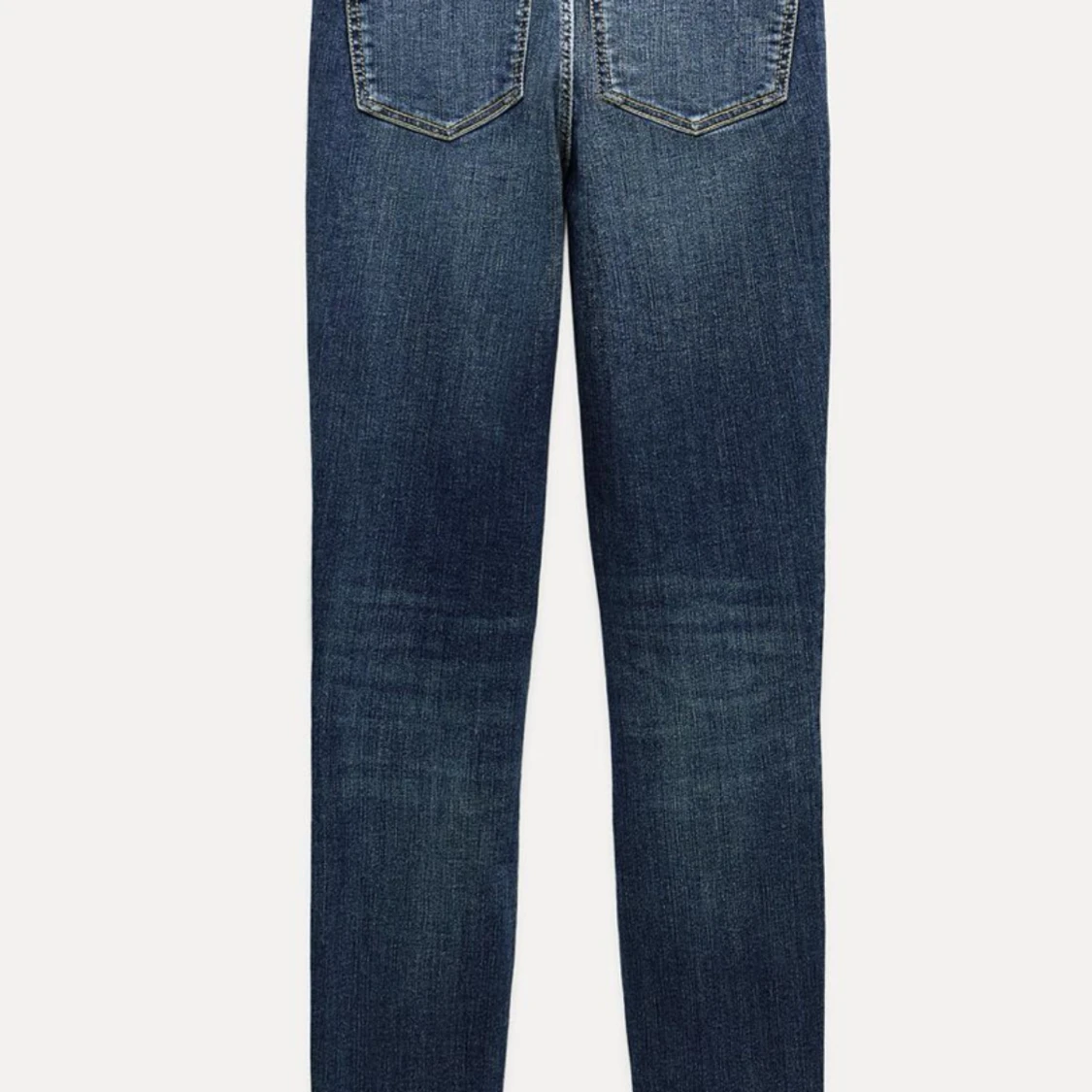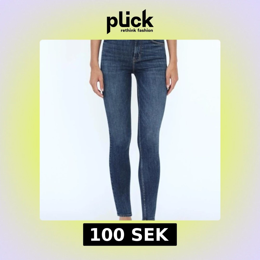 Snygga mörkblå skinny jeans med hög midja. Perfekta för en stilren look. Klassisk femficksdesign och dragkedja framtill. Inköpspris 379kr