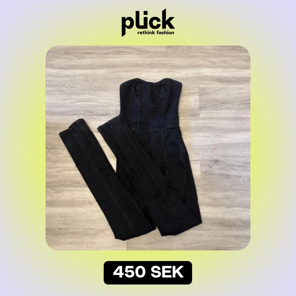 Jumpsuit i stretchigt jeans från zara med fin slits vid smalbenen, i storlek S. Använd 2 gånger. Ljusare svart, i stretchigt material. Omfamnar kroppen bra