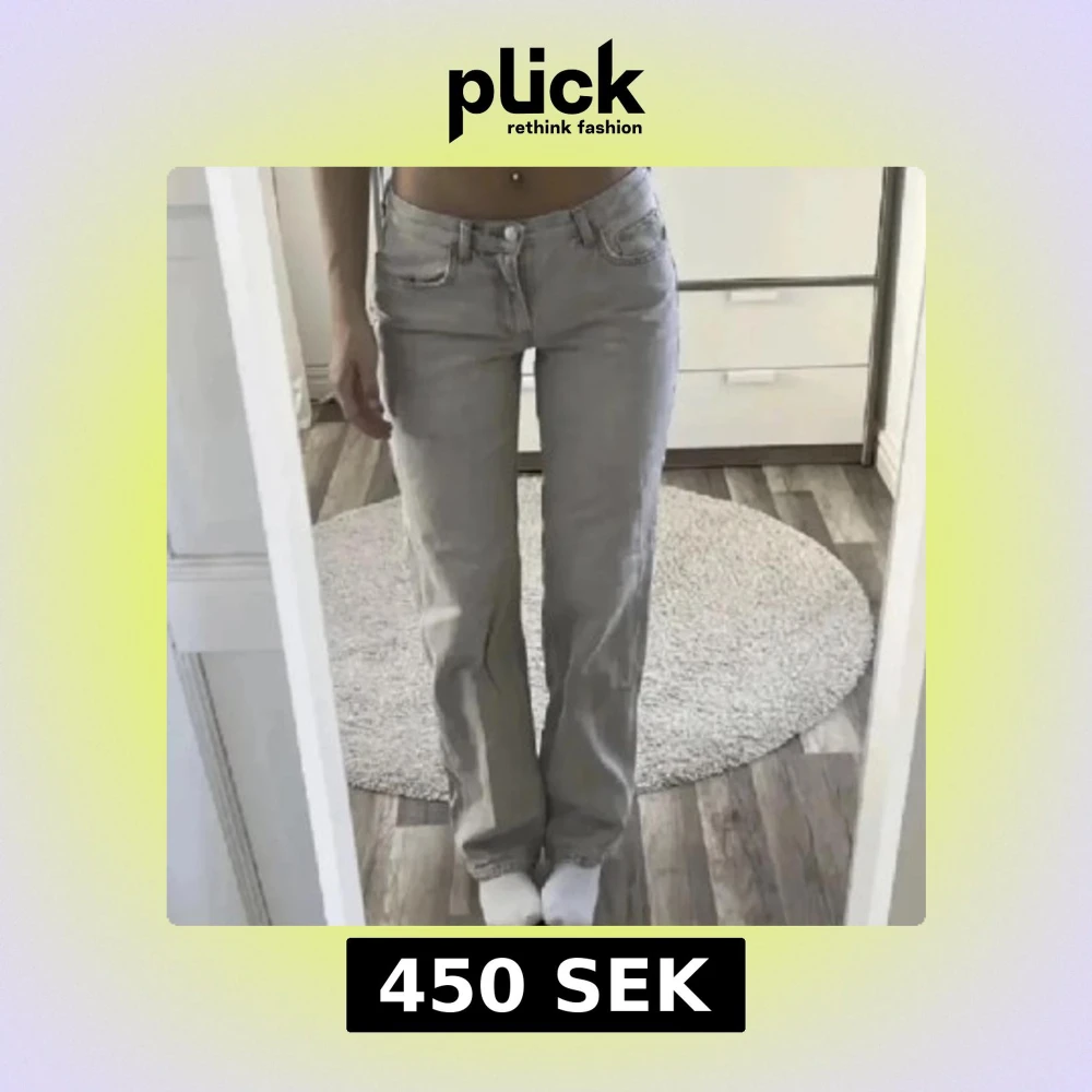 Snygga grå jeans med bootcut och låg midja. Perfekta för en avslappnad stil. De har klassiska fem fickor och en knappgylf.