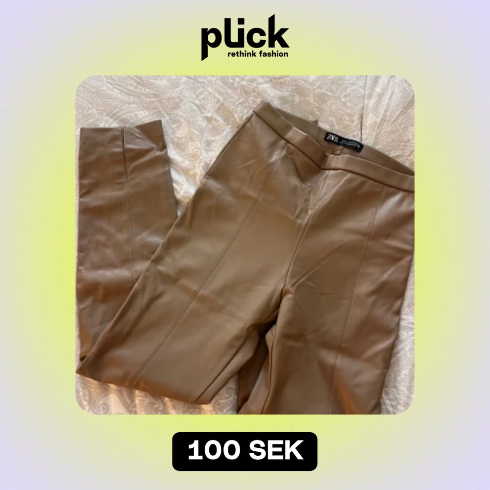 Bruna skinnbyxor från Zara - Snygga bruna skinnbyxor från Zara med hög midja och raka ben. Byxorna har dragkedja och knapp framtill samt diskreta fickor. Perfekta för dig som vill ha en trendig och stilren look.