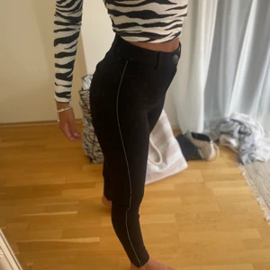 Svart byxa från Zara i storlek S. Med silver stenar längs med benen. 200kr+ frakt men säljer även tröjan så hela outfiten för 250kr+ frakt 🖤🤍
