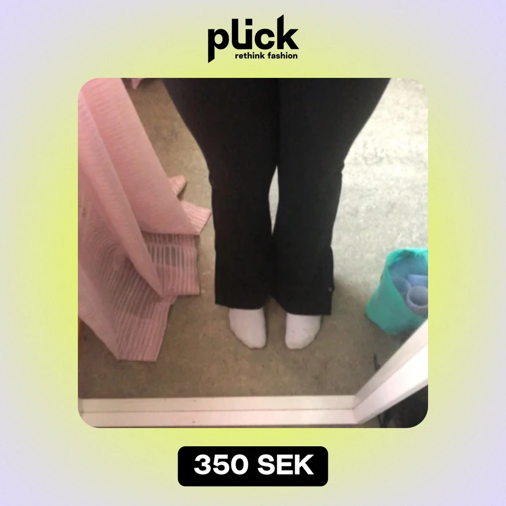 Svarta middle waist kostymbyxor bootcut öppna där nere och är i storlek S på kostymbyxorna.😁från zara är väldigt fin speciellt om du har en mellan läng eller kort❤️ passar de perfekt det funkar också om du är lite längre❤️