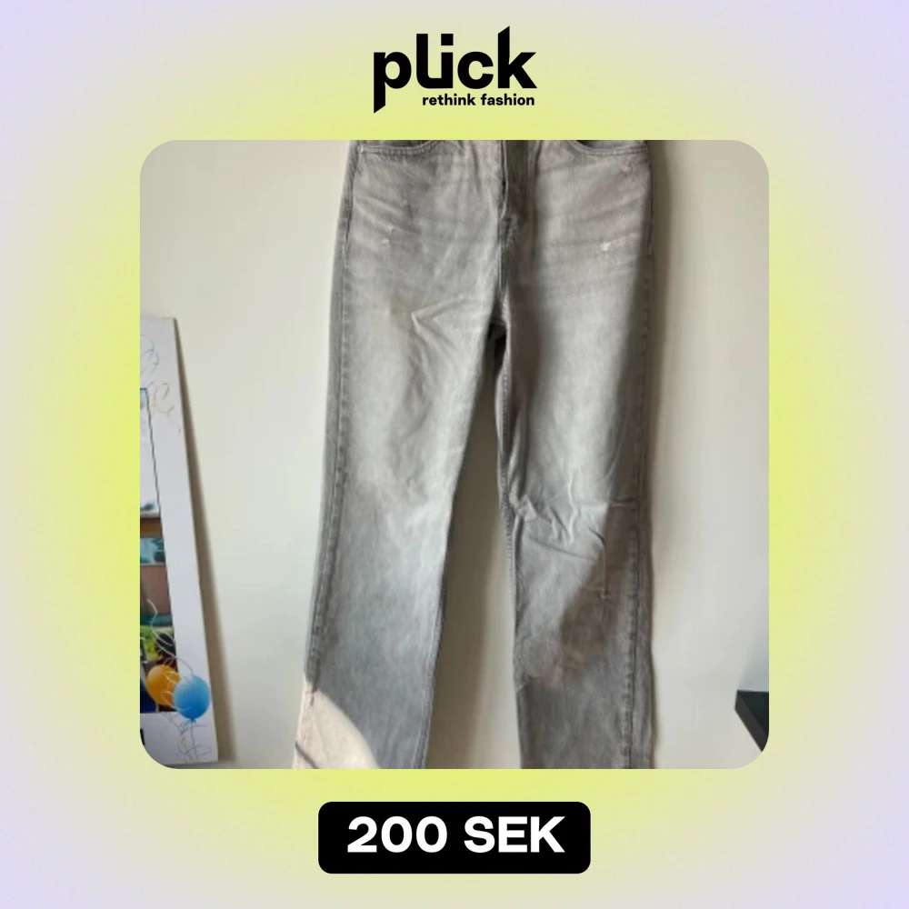Säljer ett par snygga grå jeans från Zara i storlek XS. De har en klassisk straight fit och är tillverkade i ett slitstarkt denimtyg. Byxorna har knappar i gylfen och två bakfickor. Perfekta för både vardag och fest!