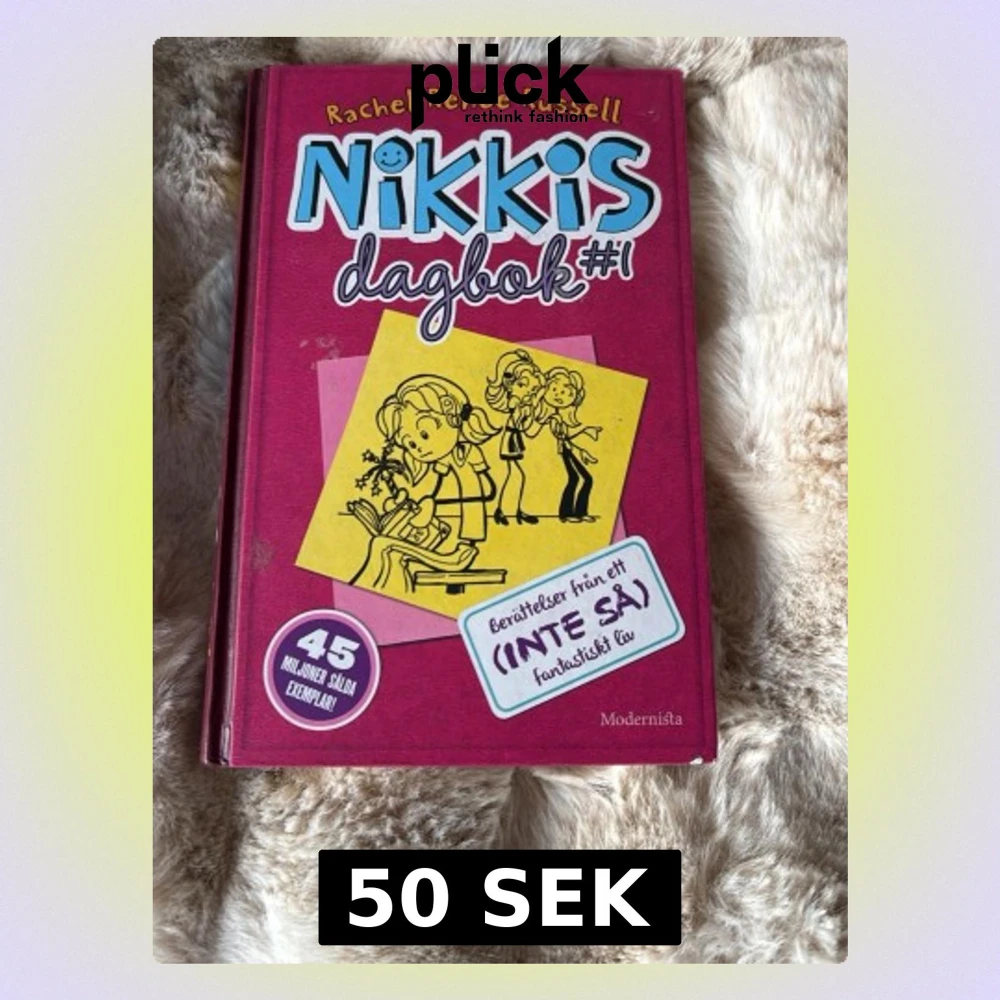 Nikkis dagbok #1 är en ungdomsbok av Rachel Renée Russell med hårda, vinröda pärmar och färgglad framsida. Boken handlar om Nikki och hennes vardag, vänskap och pinsamheter. Perfekt för dig som gillar humor och dagboksstil.