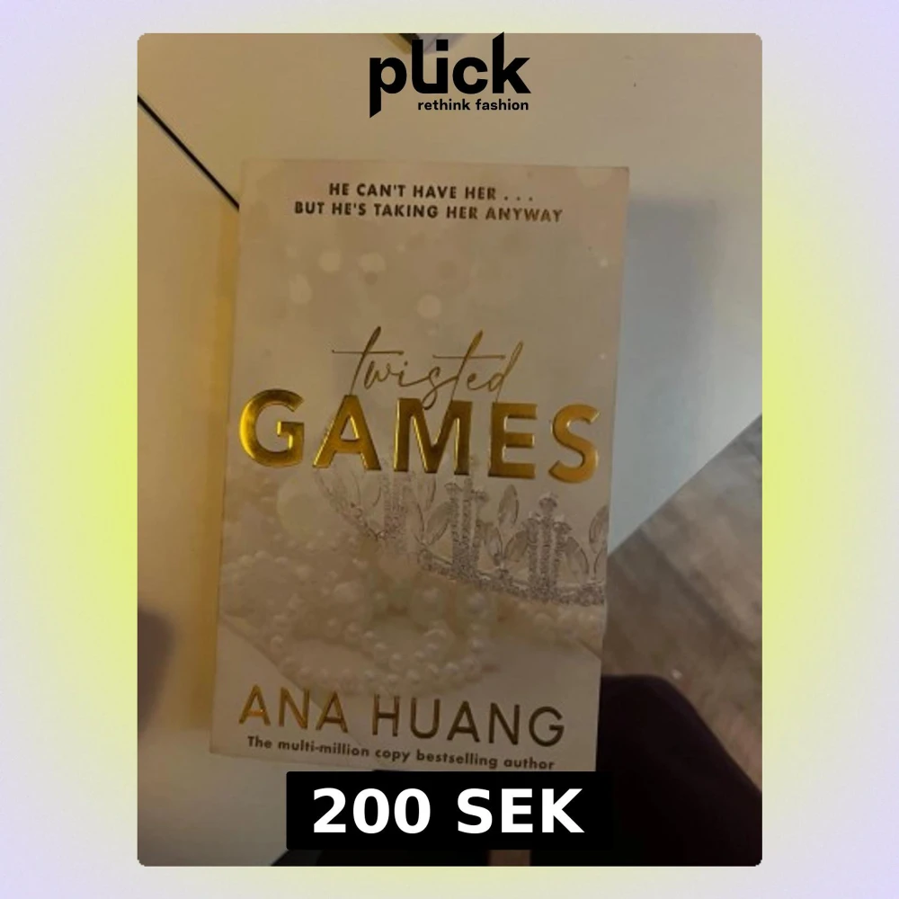 Twisted Games är en romantisk skönlitterär bok av Ana Huang. Omslaget är beige med guldfolierad text och dekorerat med pärlor och en krona. Perfekt för dig som gillar spännande och känslosamma berättelser.