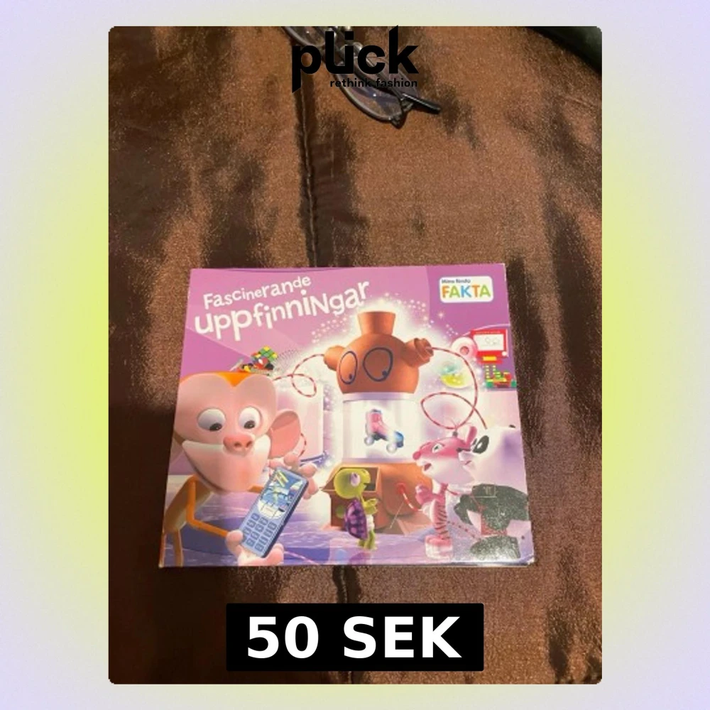 En färgglad barnbok med titeln 'Fascinerande uppfinningar' från serien Mina första Fakta. Omslaget är lila och pryds av tecknade djurfigurer och olika uppfinningar. Boken är illustrerad och riktar sig till yngre läsare som vill lära sig om spännande uppfinningar.