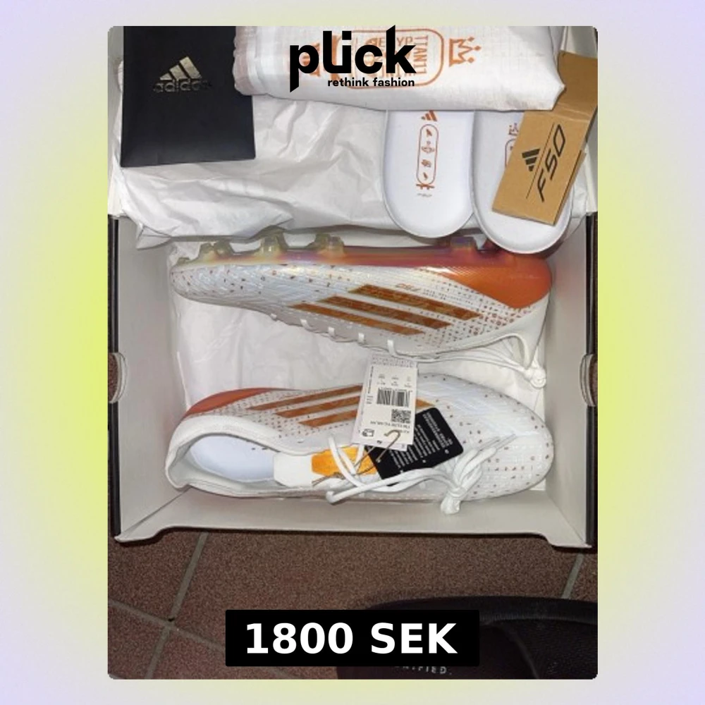 Säljer ett par Adidas F50 Salah i vitt med orange och guldiga detaljer. Stl 45. Aldrig använda! Notera Billigaste du kan hitta!