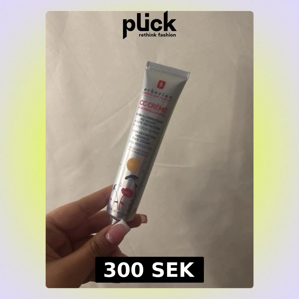 Erborian CC Crème i nyansen Clair, en multifunktionell foundation i tub med silvrig finish och blommigt tryck. Ger jämn hudton och lyster. Tuben är smidig och lätt att ta med i necessären.