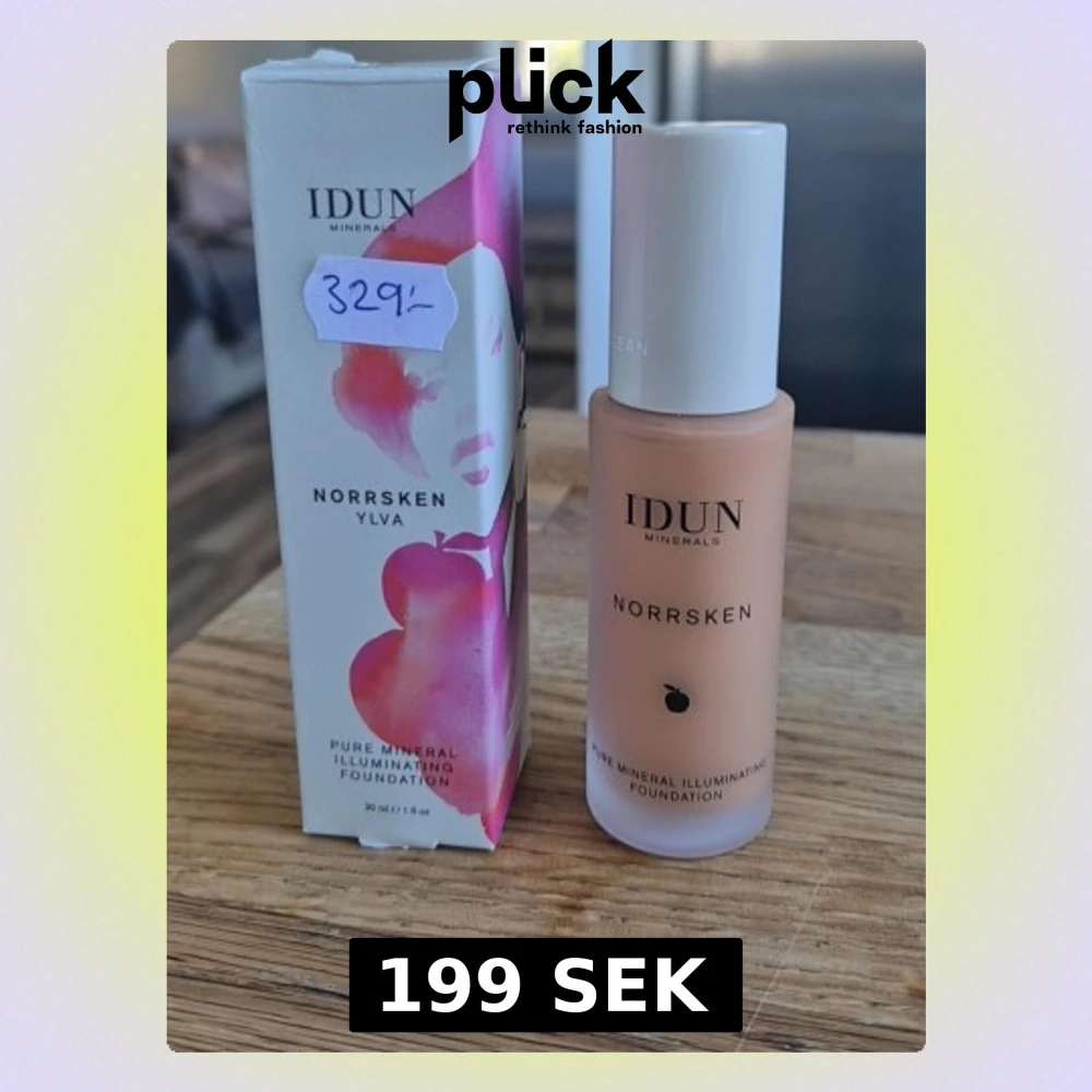 IDUN Minerals Northern Lights Pure Mineral Illuminating Foundation in the shade Ylva, Neutral medium/dark 214. This is a liquid mineral foundation that provides easy coverage. The product is vegan. Shippping same day if you order during opening hours of post office