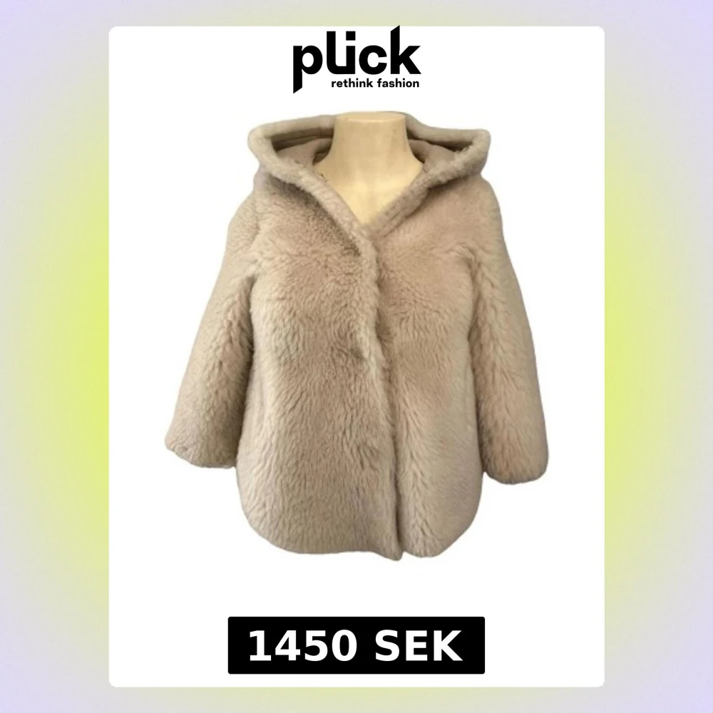 Säljer en fluffig beige pälsjacka från Yves Salomon Enfant. Jackan har huva och är gjord i 100% äkta lamm. Perfekt för dig som vill ha en lyxig och mysig look med oversized känsla och kortare ärmar.