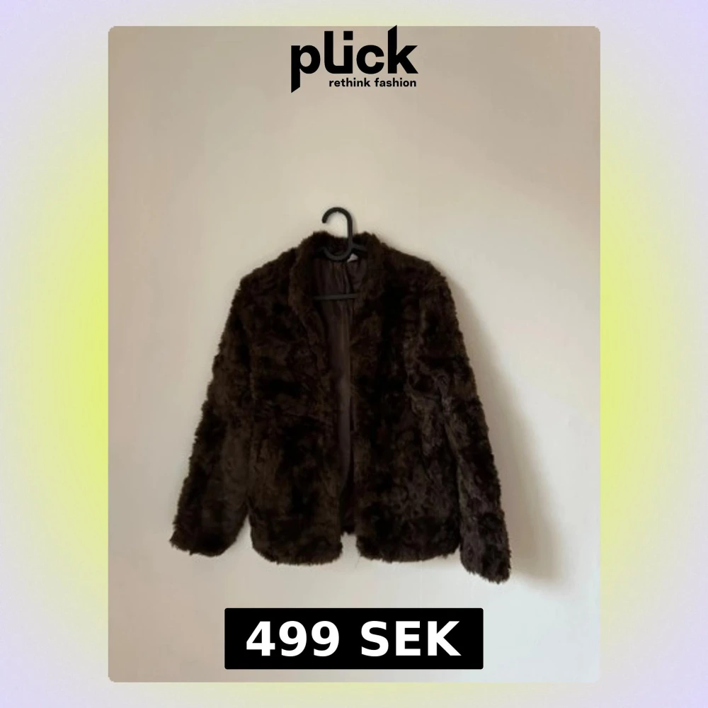 Säljer en mörkbrun fuskpälsjacka med rak passform.