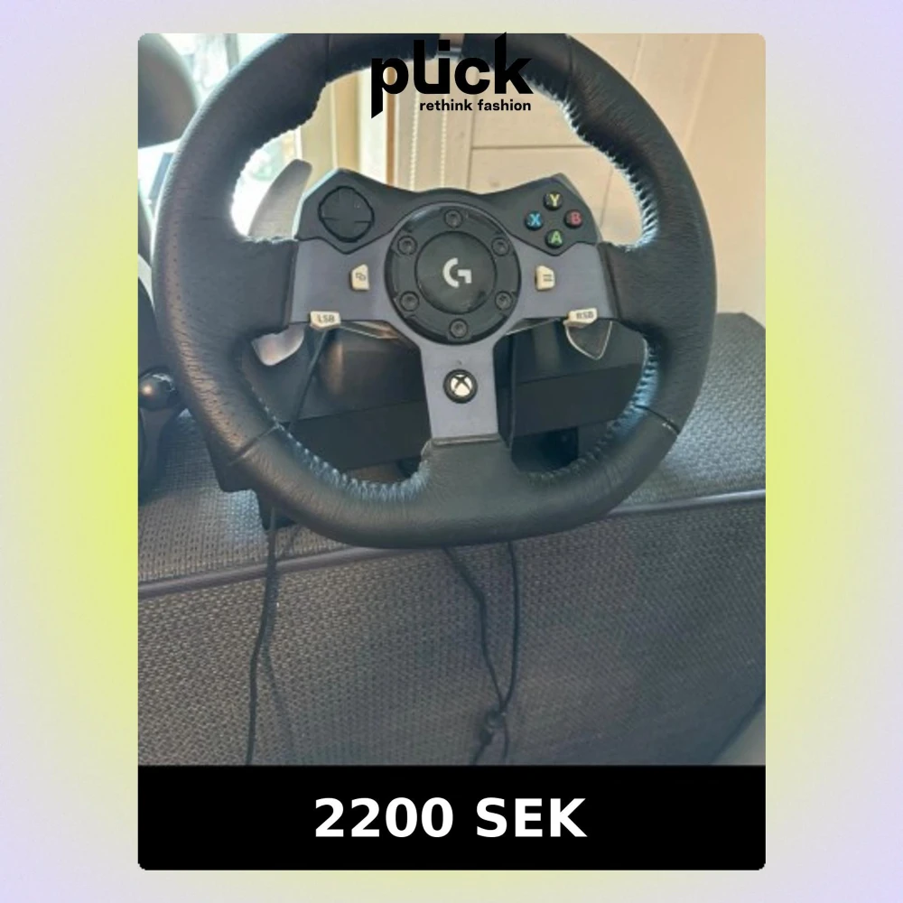 Säljer en Logitech G920 racingratt med svart konstläder och metall, designad för Xbox och PC. Ratten har klassiska Xbox-knappar, paddlar i metall och en robust konstruktion som ger realistisk racingkänsla. Perfekt för dig som vill ta racing till nästa nivå. Pedaler med gas, broms och koppling, och växelspak för att få en ännu mer realistiskt känsla