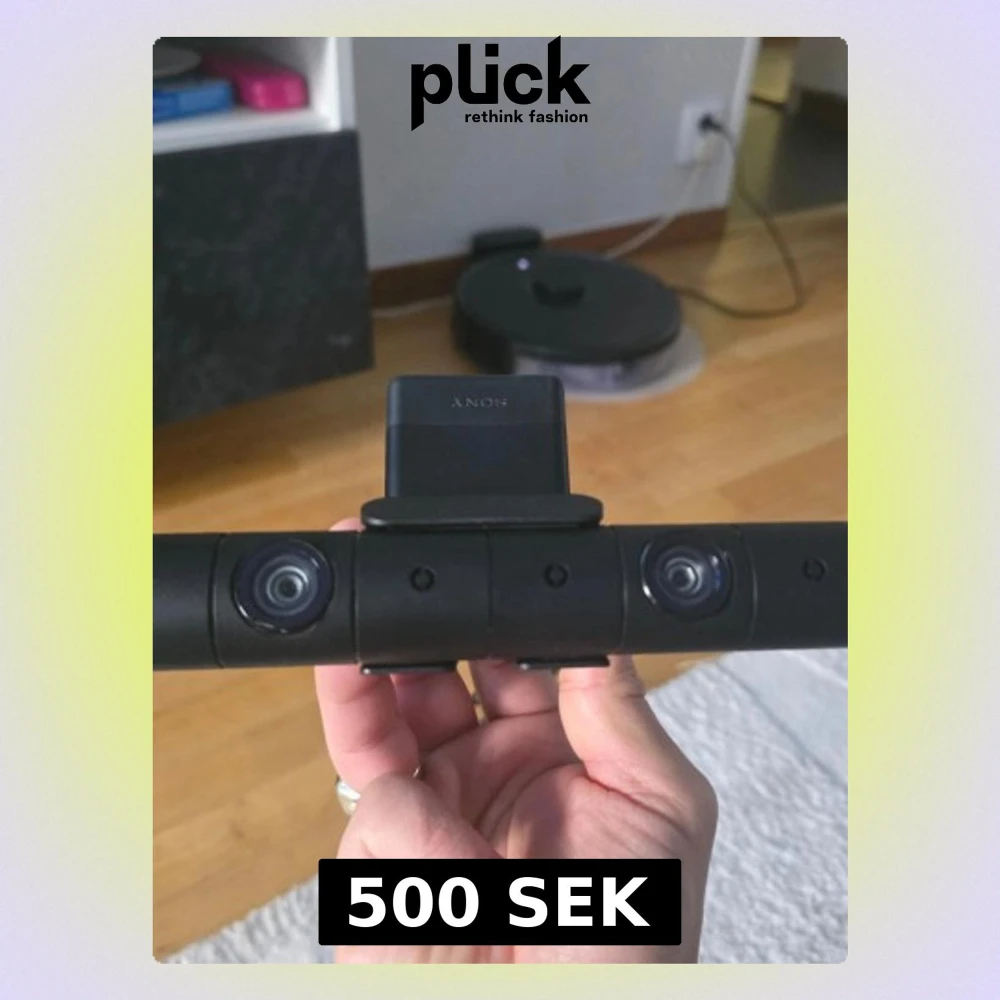 Säljer en svart PlayStation Camera från Sony med två linser och mikrofon, perfekt för streaming eller röststyrning till PlayStation. Kameran har en rundad form och är tillverkad i plast. Enkel att koppla in via USB till din konsol.