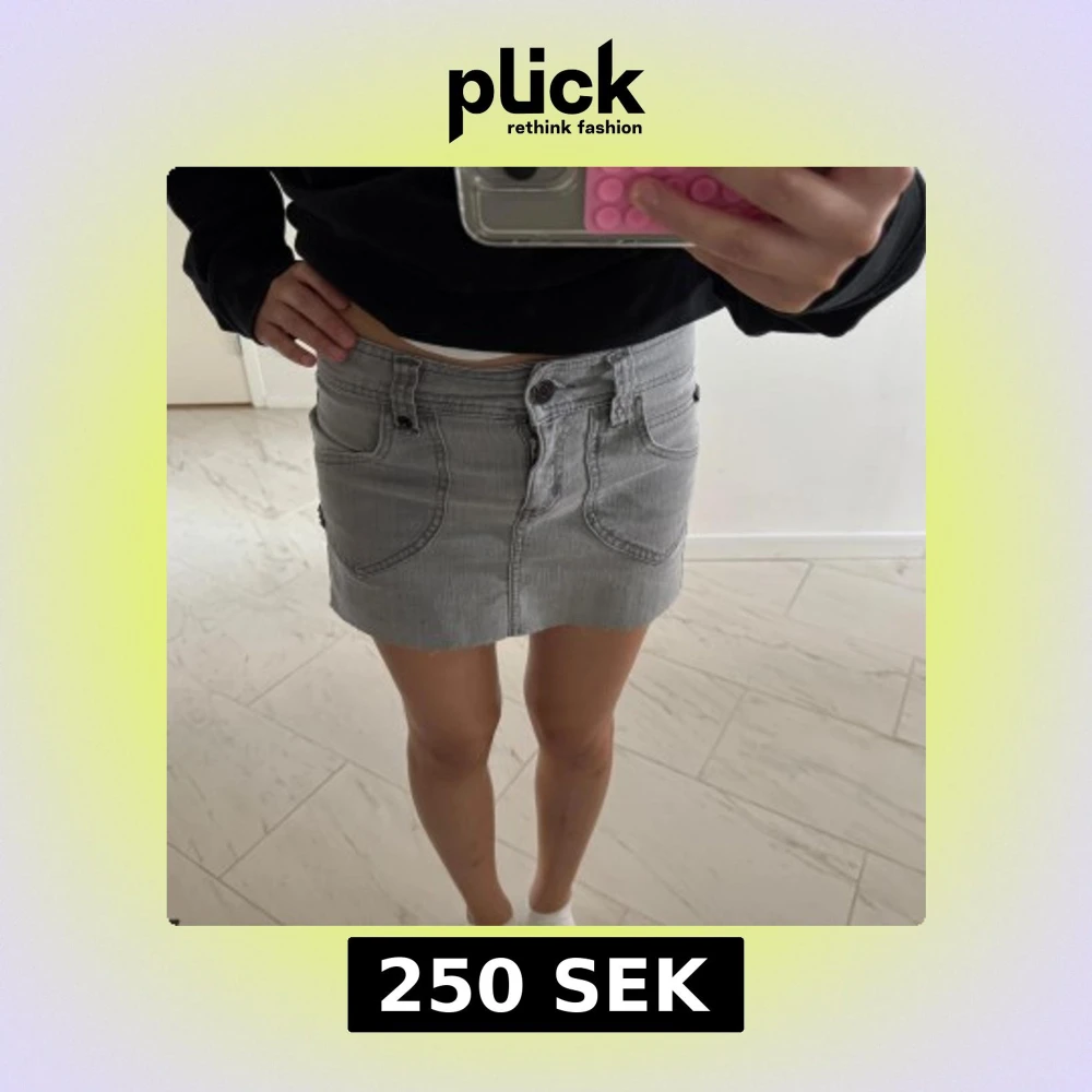 Jätte snygg grå jeans kjol som är lågmidjade. Köpt secondhand, märket är only.