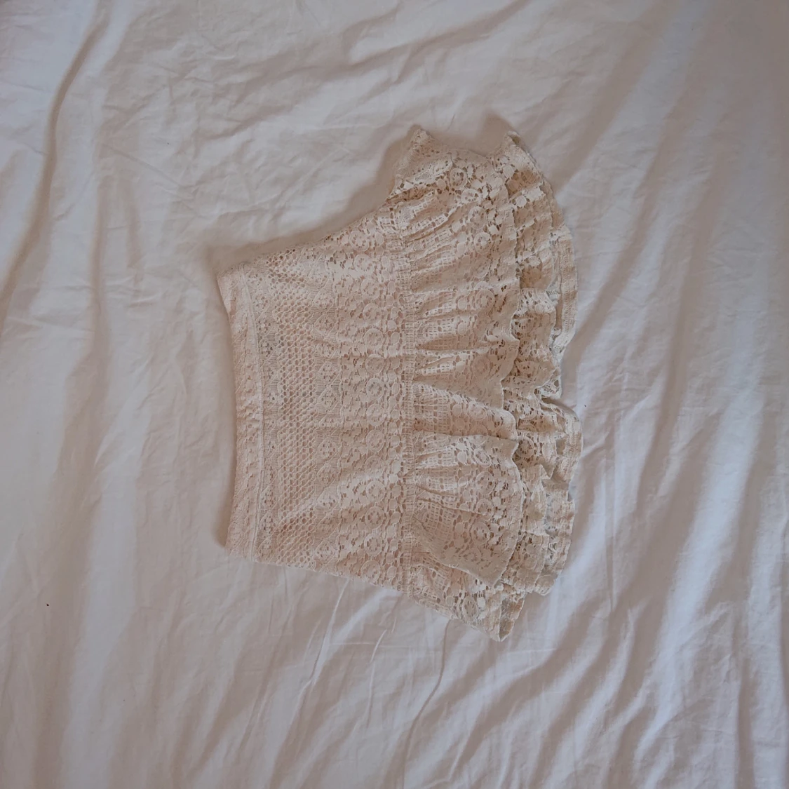 Kort, gräddvit spetskjol med volanger köpt i USA. Använd en gång.