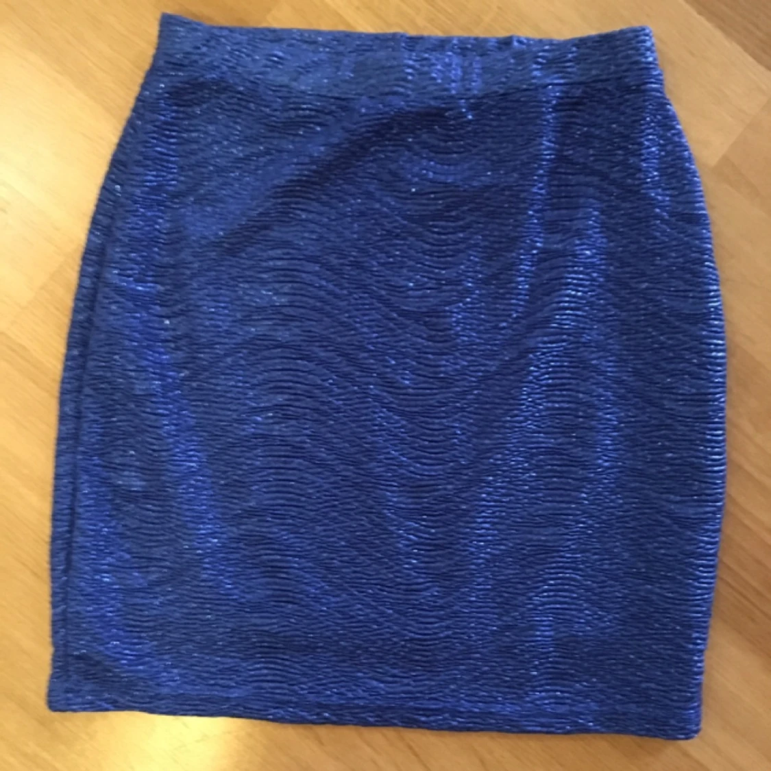 Glitterblå kjol, i storlek XS, dock stretching så passar en s också.