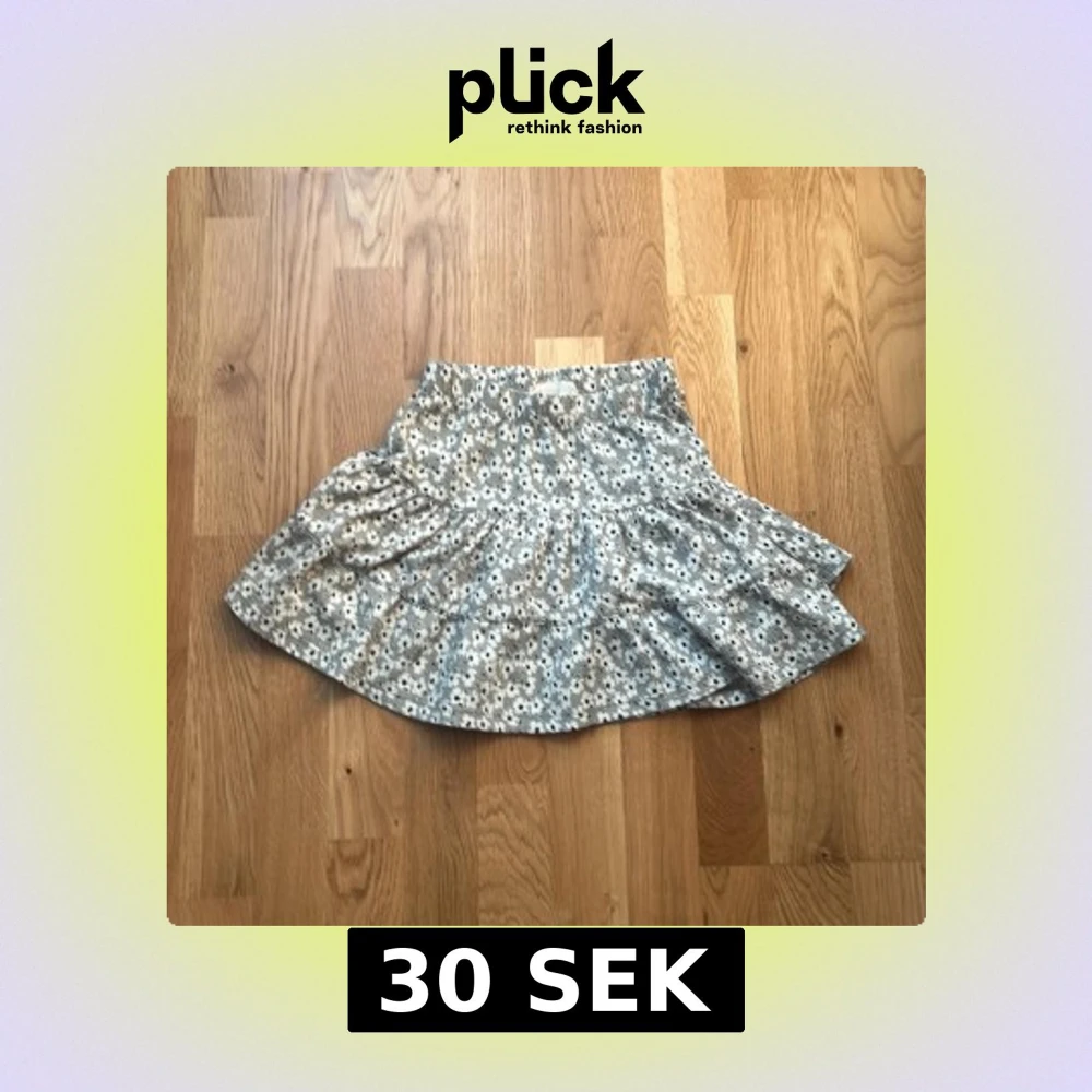 Supersöt kort kjol med volanger från 157 New. Kjolen är grå med ett blommigt mönster i vitt och svarta detaljer. perfekt för dig som gillar en chill och lekfull stil.