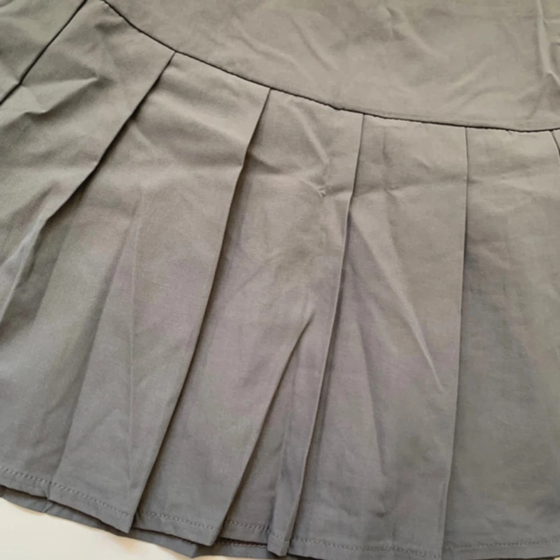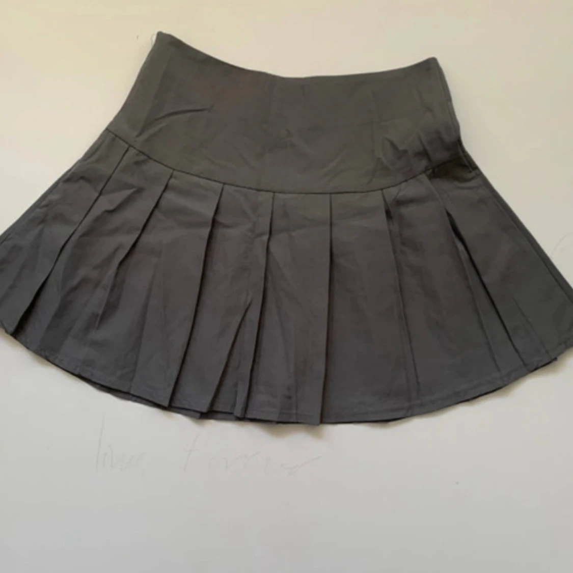 Grå kjol i tennis/ volang stil Tyget är runt men helt defekter och aldrig använt kjolen Dragkedja vid sidan av kjolen 🎀 Total längd: 40cm Första partiet till volangerna börjar :15cm Midjebredd :35 cm